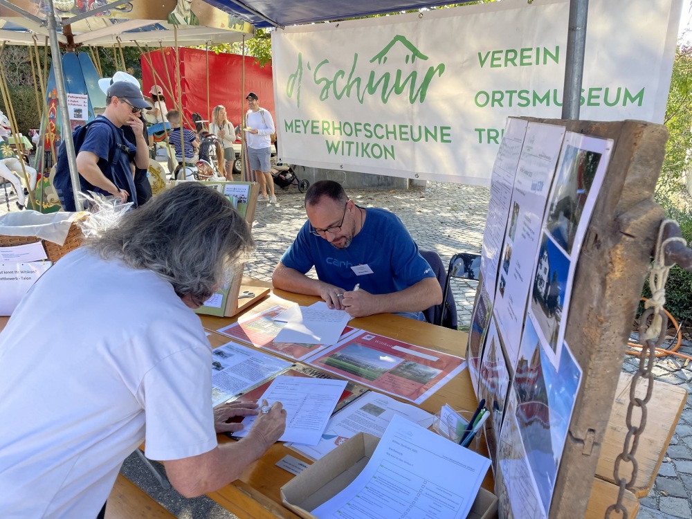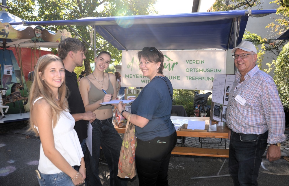 Die Meyerhofscheune war auch am Dorfmarkt 2025 mit einem Stand vertreten. Der traditionell knifflige Wettbewerb hatte dieses Jahr mit weit über 50 Teilnehmern eine Rekord-Beteiligung.