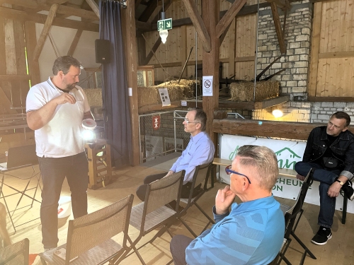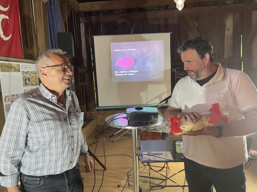 Roger Suter (Geschäftsführer von Maler Suter, Witikon) gab uns spannende Einblicke in die Geschichte des Fresko-Malens. Er erklärte den Unterschied zwischen "Fresko" und "Secco" und zeigte uns viele, teils sehr wertvolle Pigmente und Farbstoffe, die in der Geschichte der Malerei verwendet wurden. Zuguterletzt lernten wir, was es mit dem "blauen Wunder" auf sich hat.