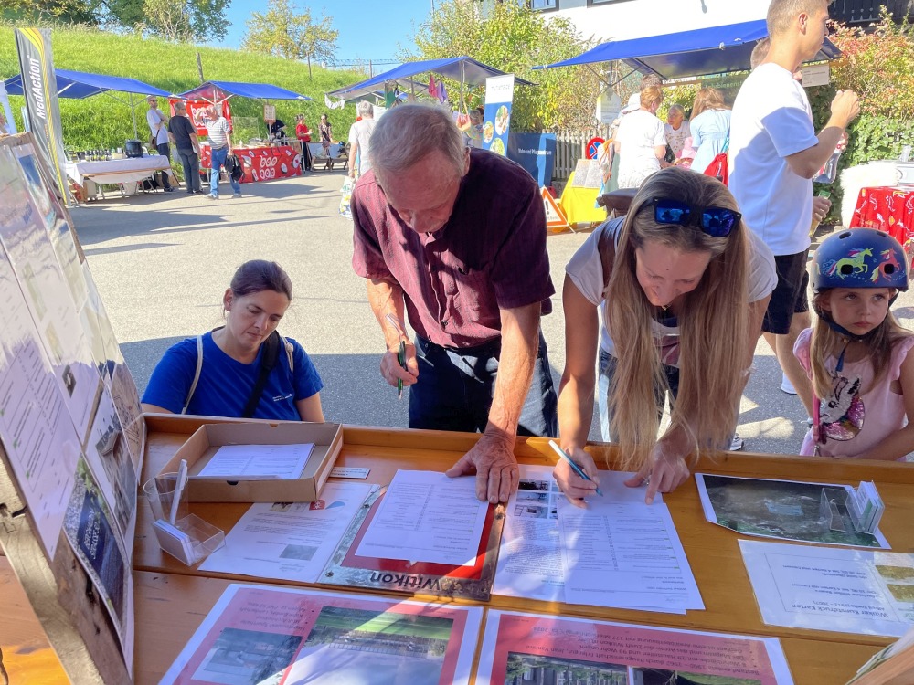 Die Meyerhofscheune war auch am Dorfmarkt 2025 mit einem Stand vertreten. Der traditionell knifflige Wettbewerb hatte dieses Jahr mit weit über 50 Teilnehmern eine Rekord-Beteiligung.